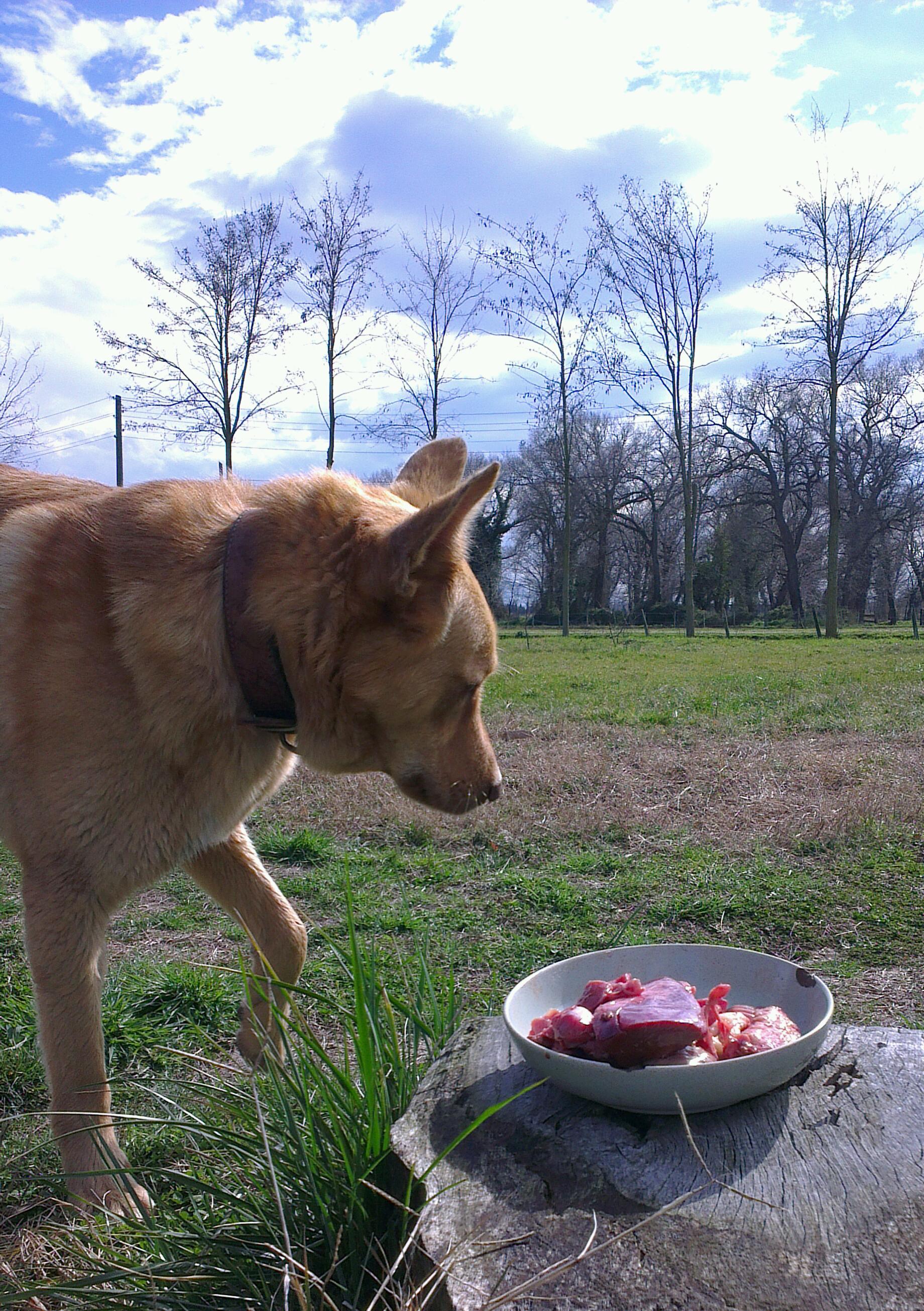 - yüzde 10 kemik (vitamin D ve kalsiyum) – kemik sıyrılmış olarak değil, etli olarak verilmesi tercih edilir. Ayrıca iri hayvanların taşıyıcı kemikleri köpeklerin dişleri için fazla sert olduğundan sakınılmalıdır.