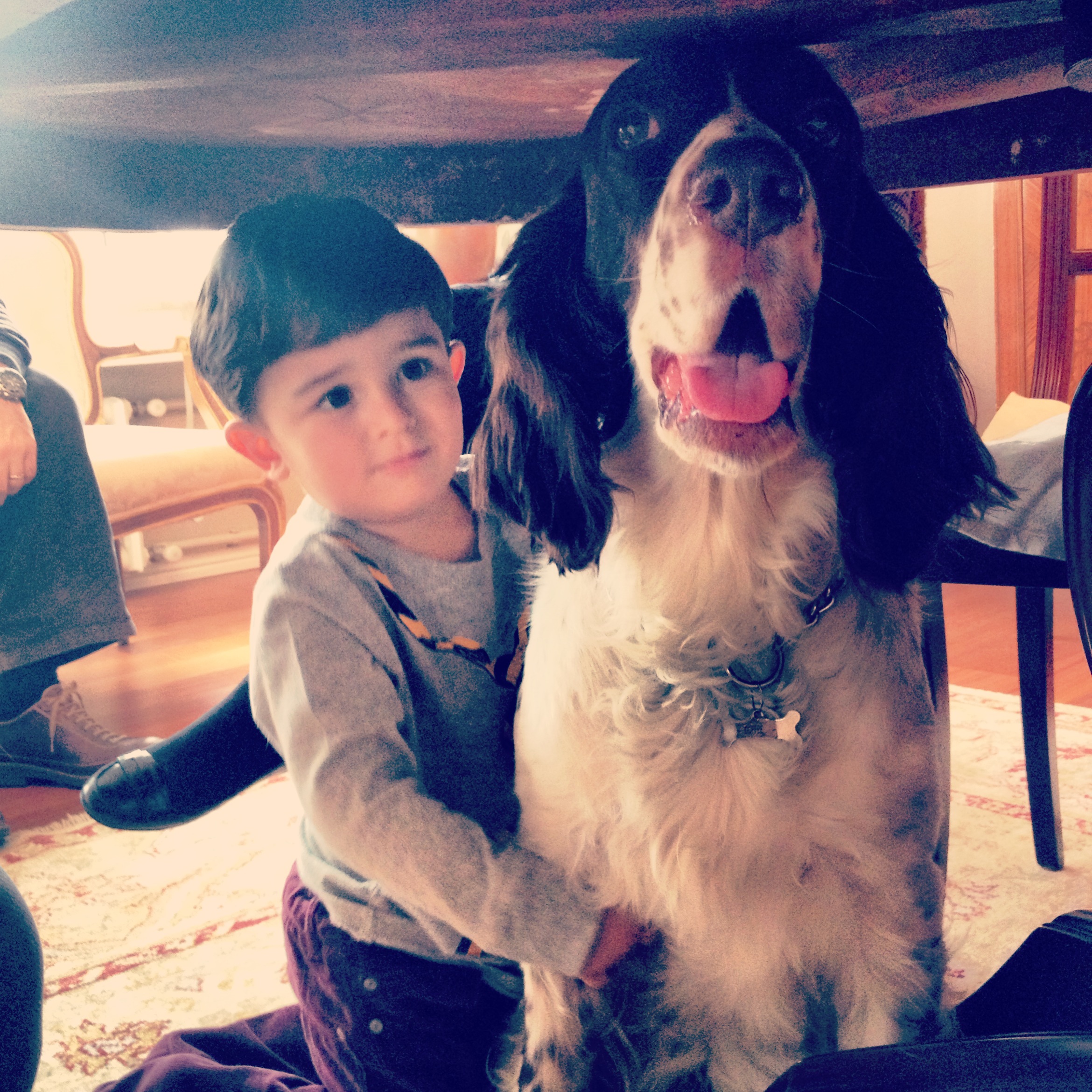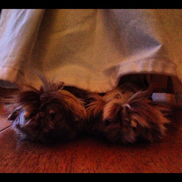 Biz büyüdük, yetişkin olduk. Bizim neslin çocukları ve köpekleri yerimizi aldı. Bu içten gelen sığınma, korunma ve kendi dünyasını yaratma güdüsünü ufaklıklarda ve Coffee’de birebir gözlemliyorum. Coffee hem çocuklarla birlikte olmayı hem de başını korunaklı bir yere sokmayı çok seviyor. Bazen Coffee zaten masanın altında yerleştiği için çocuklar peşi sıra dolanıp ona yanaşıyorlar bazen de tam tersi köşe kapmaca oynuyorlar. Masa altında çocuk ve köpekler bir şekilde buluşuyorlar.