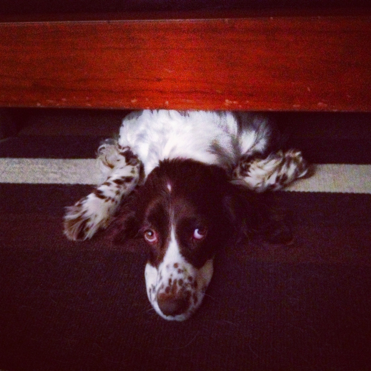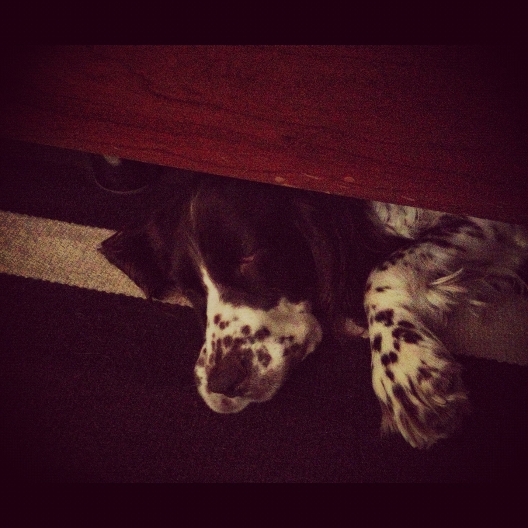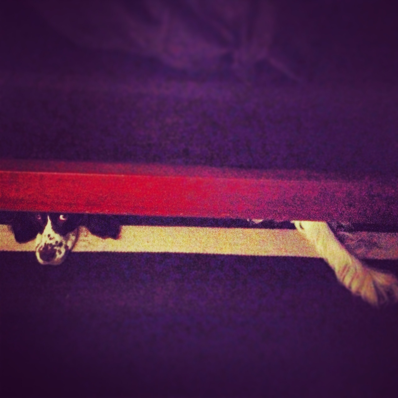 Hem yatağın altında, kendi dünyasında, memnun. Hem bize yakın mesafede. Tam altımızda!